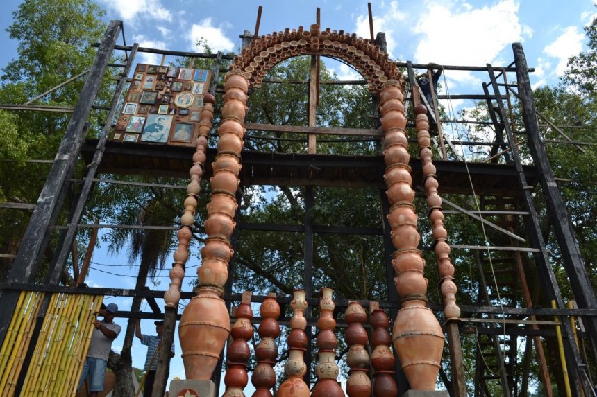 Un retablo de los santos adornados con diferentes rubros de artesanía confecciona el artista Koki Ruiz para la semana santa en Tañarandy, distrito de San Ignacio. La ciudad se prepara para el gran evento religioso.