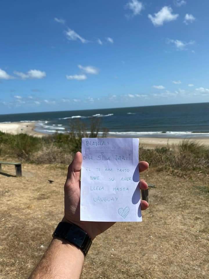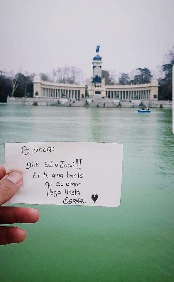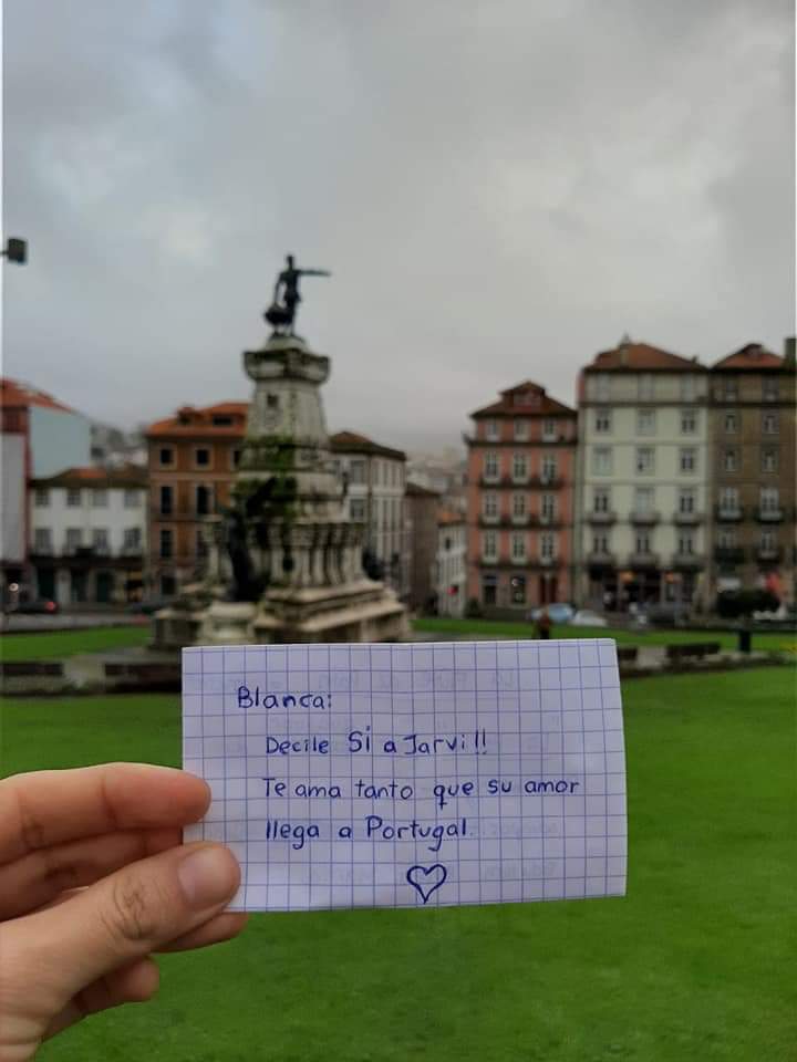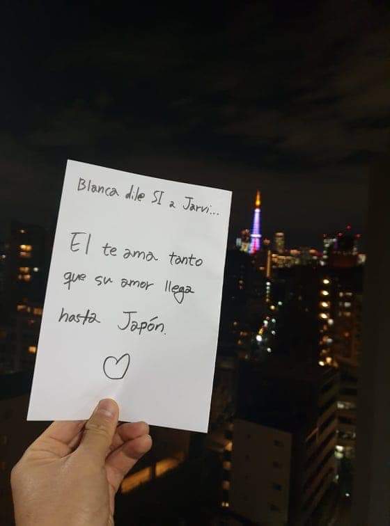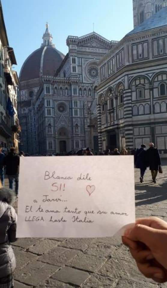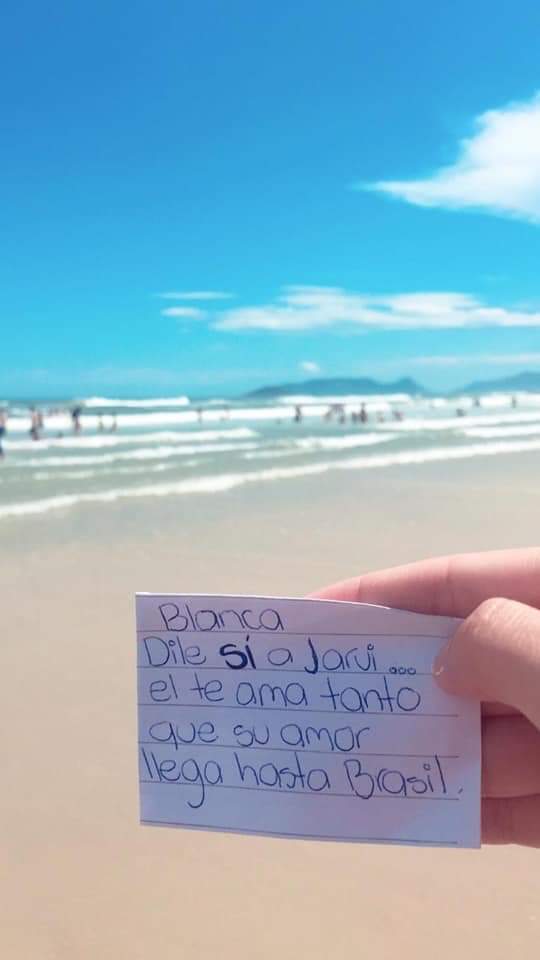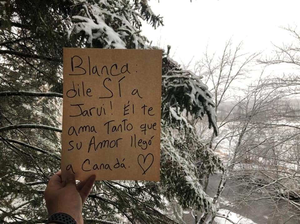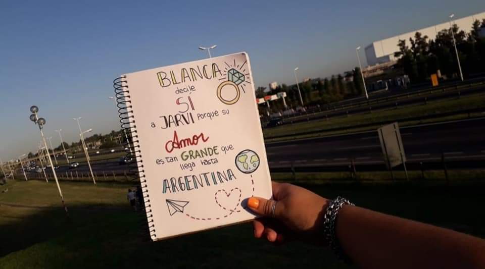 Duarte nos comentó que tardó muchos días para reunir las fotografías que en su texto señalaban «Blanca: Decile que si a Jarvi. Te ama tanto que su amor llegó a…» seguido del lugar desde donde abogaban por aceptar la propuesta de casamiento. Las imágenes venían de Argentina, Canadá, Chile, Uruguay, Brasil, Holanda, España, Japón, Guatemala, Estados Unidos, Portugal, Rusia, Polonia, Bélgica y Noruega entre otros países.
